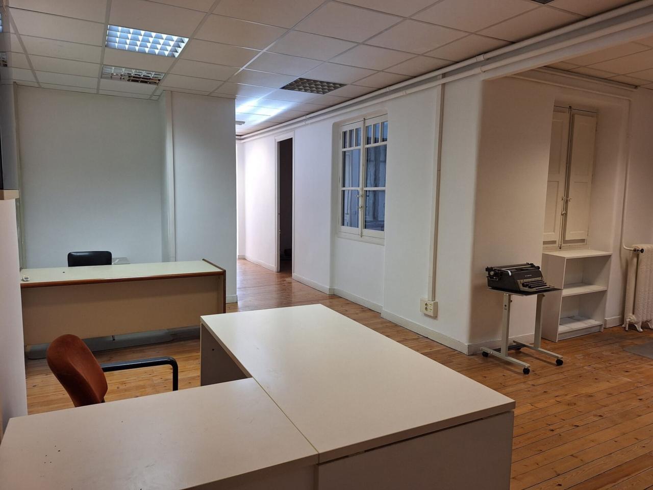 4 despachos interiores dos de ellos a zona ajardinada soleados. de los otros dos destaca un área de 20-25 m², perfecta para instalar 4 o 5 puestos de trabajo.